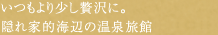 ロケーションは有名観光地のそれに遠く及びません。漁港の風情漂うひなびた田舎町です。華やかさはありませんが、それ故に日常を忘れ、のんびりと過ごされるには最適です。